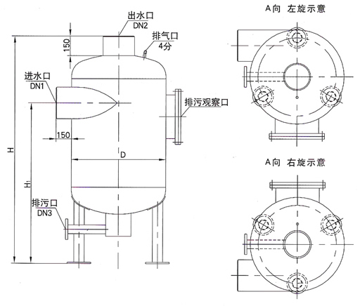 排污时打开下部的牌无法将积存的污垢杂质排出。粘附在滤网上的污垢可打开观察孔盖滤除。