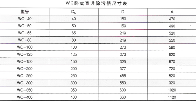 本卧式除污器为直通式除污器,其工作原理与立式除污器相同,水从一侧接管进入筒体内,另一侧接管与筒体内的滤网孔管相连,过滤网孔管是由许多直径为 3.5 毫米的小孔构成。水中的杂质颗粒被网孔滤除,积存在筒体的底部,无杂质颗粒的水经过滤网孔从改厕接管流出。